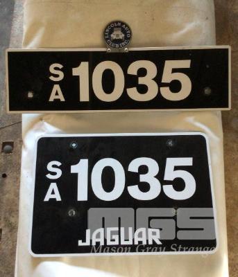 NUMBER PLATE SA NUMERICAL 1035 OWNED BY THE PHILLIPS FAMILY TRANSFERRABLE ORIGINALLY LISTED ON A 1912 TALBOT PLATE PURCHASED ON THE 1958 JAGUAR REMOVED FROM THE JAG TO BE SOLD SEPARATELY