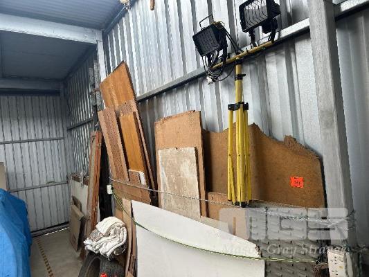 PANEL, SUNTUF, PLASTERBOARD, PARTS RACK & 3 x STEEL LADDERS