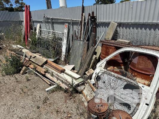 TIMBER BOARDS, STEEL FRAMES, RIO, BAR, AXLE ON FENCE LINE