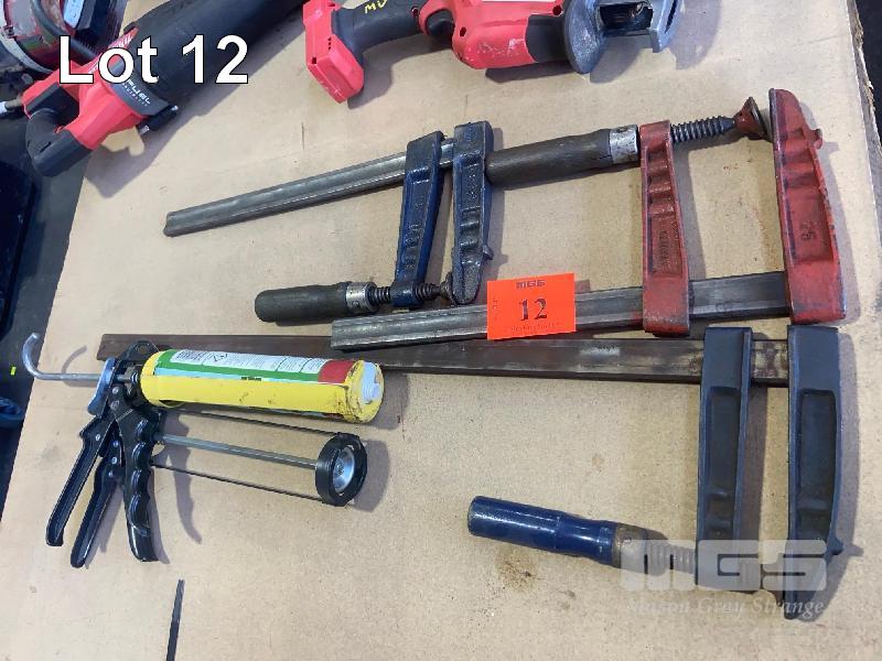 3 x F-CLAMPS, BESSEY & CAULKING GUNS