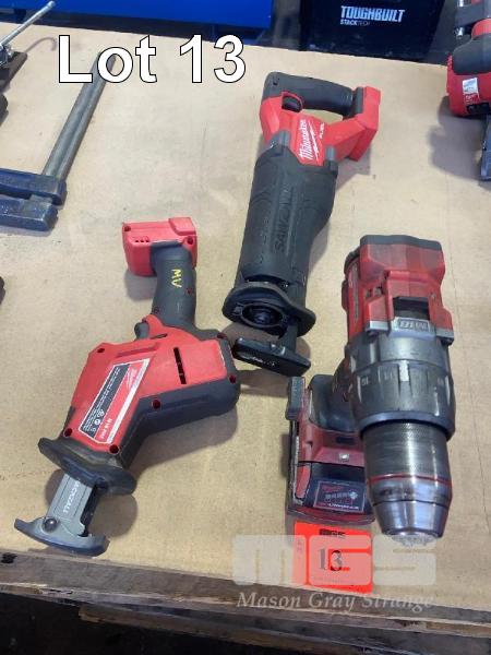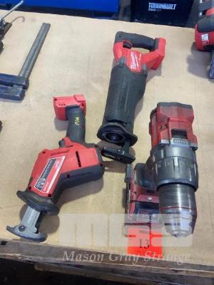 MILWAUKEE 18V DRILL, RECIPRO SAW, SABRE SAW & 1 x BATTERY