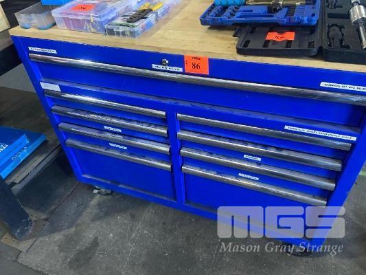 MOBILE ROLL CAB BASE, 1200 x 500mm, 9 DRAWER & ASSORTED TOOLS