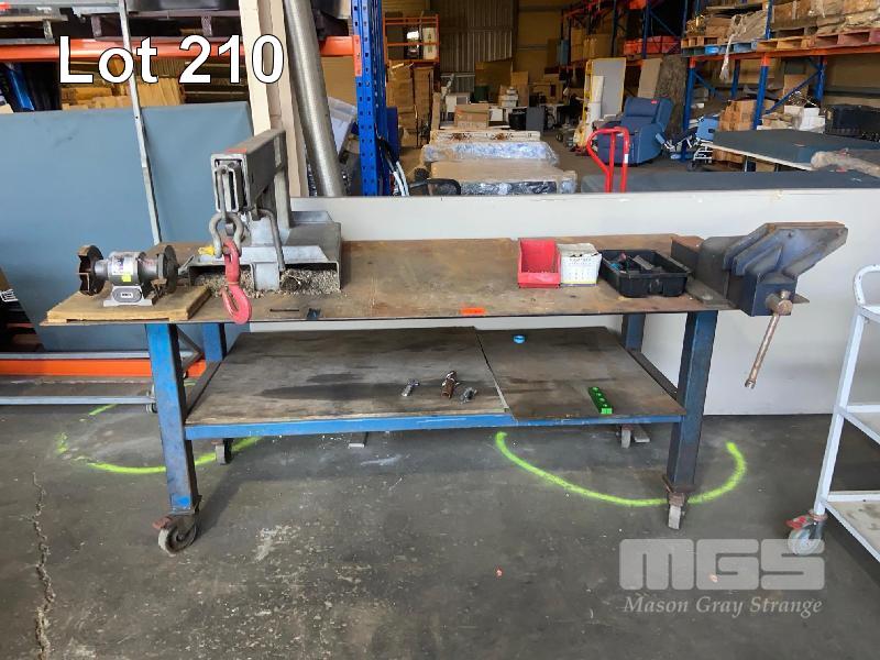 PLATE TOP WORK BENCH, 2400 x 1000mm WITH 150mm OFFSET VICE MOBILE