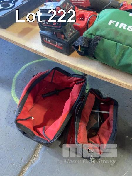 MILWAUKEE CORDLESS POWER TOOLS, INCL CIRCULAR SAW, 7" 2 x ANGLE GRINDERS, 115mm SANDER, F18FMT BLOWER , VACUMM 2 x BATTERIES 1 x CHARGER 2 x CARRY BAGS