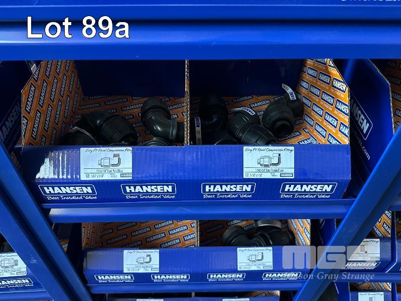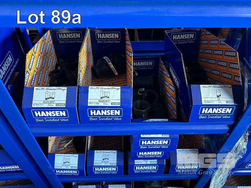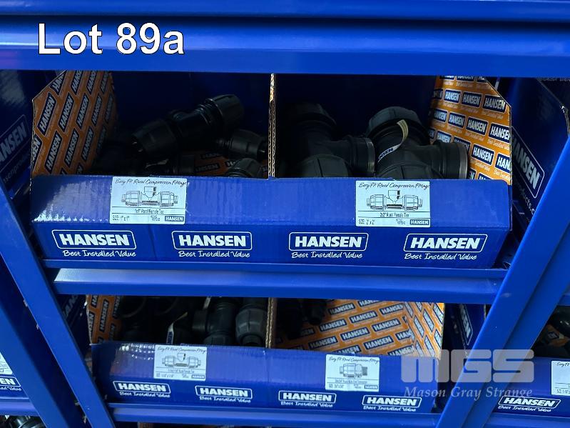 LARGE QUANTITY HANSEN POLY IRRIGATION FITTINGS INCLUDING PHILMAC STYLE SCREW ON, 3/4 (19mm) -2" (50mm) TEE'S, ELBOWS, TANK FITTINGS, ETC, (DOES NOT INCLUDE RACKS)