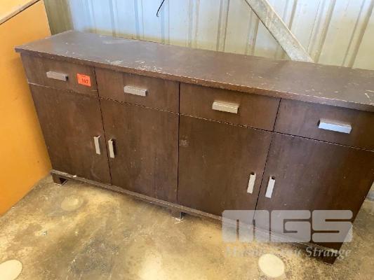 PLAN BENCH, SIDE CUPBOARD, MULTI SHELF UNIT, MOBILE BASE 2 x GP SHELVES WITH STEEL 4 DRAWER FILE CABINET