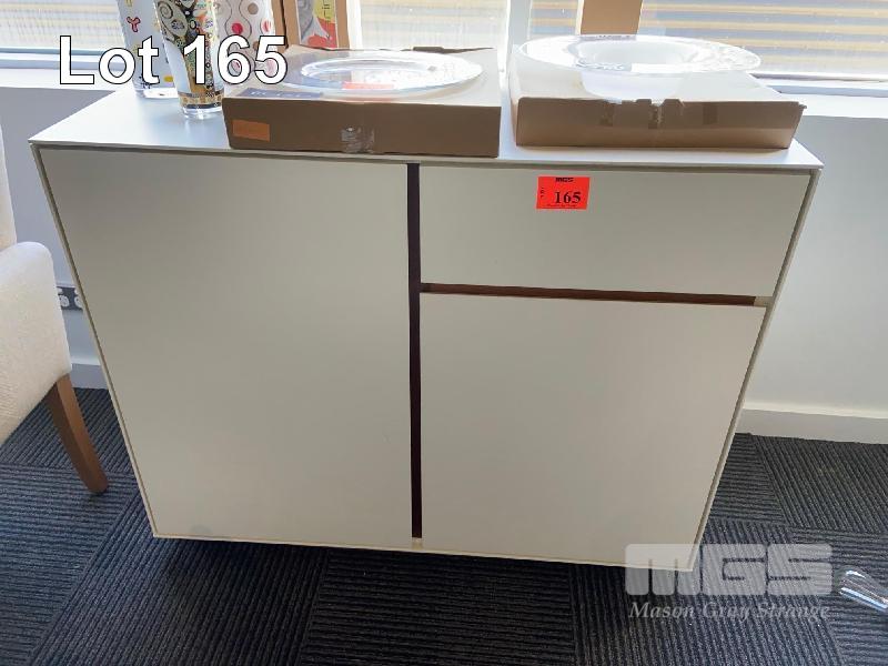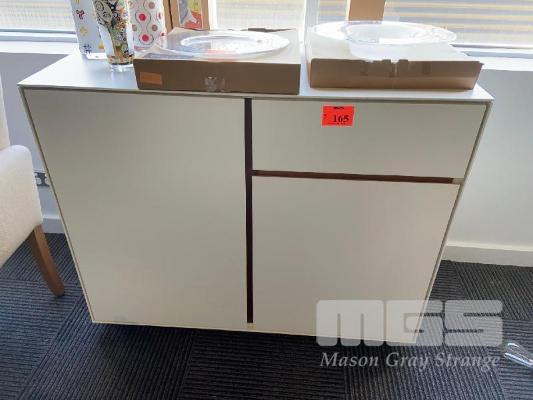 WHITE TIMBER CUPBOARD, 2 DOOR, 1 DRAWER 1100 (L) x 460 (D) x 900mm (H)