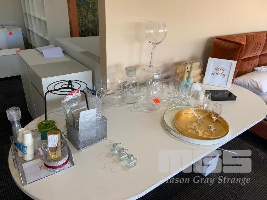 ASSORTRED GLASSWARE & ORNAMENTS