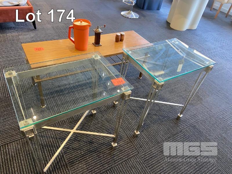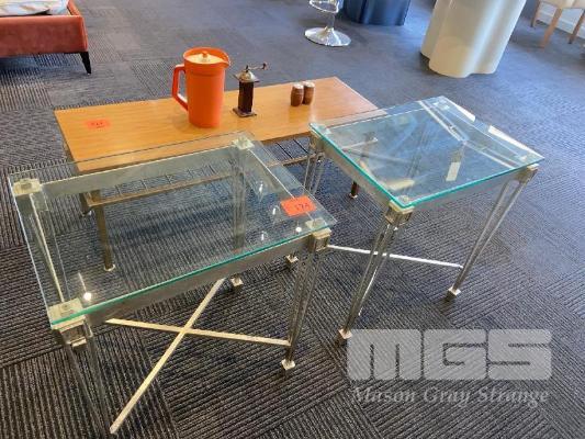 2 x GLASS & STEEL COFFEE TABLES, 570 x 400 x 560mm (H)