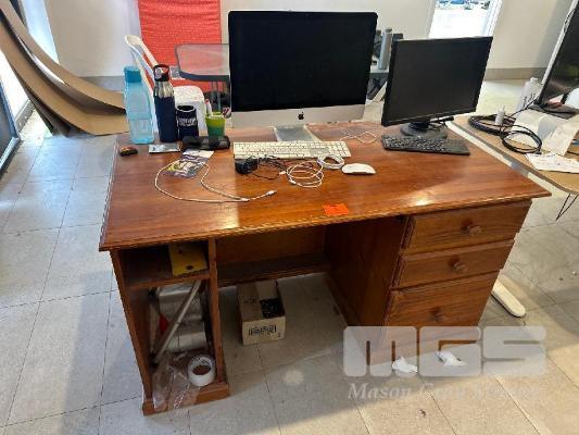 TIMBER DESK, 1400 x 720mm, 3 DRAWERS WITH APPLE MONITOR, KEYBOARD & MOUSE