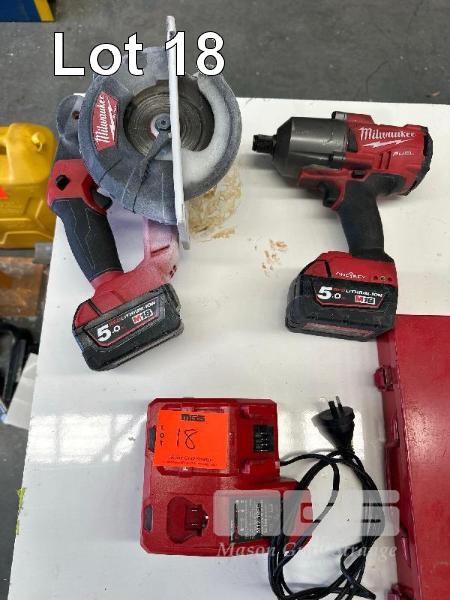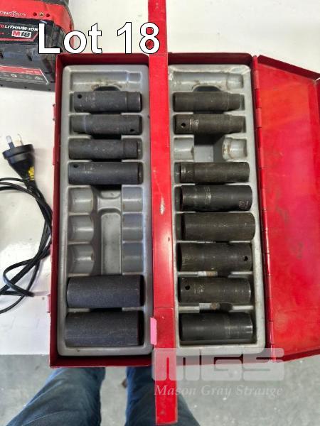 MILWAUKEE CIRCULAR SAW, 18V & MILWAUKEE RATTLE GUN, 2 x 5.0AH BATTERIES & CHARGER & ASSORTED IMPACT SOCKETS