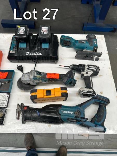 MAKITA 18V TOOLS INCLUDING RECIPRO SAW, ANGLE GRINDER, JIGSAW, DRILL, 3.0 AH & 5.0 AH BATTERY & BATTERY CHARGER