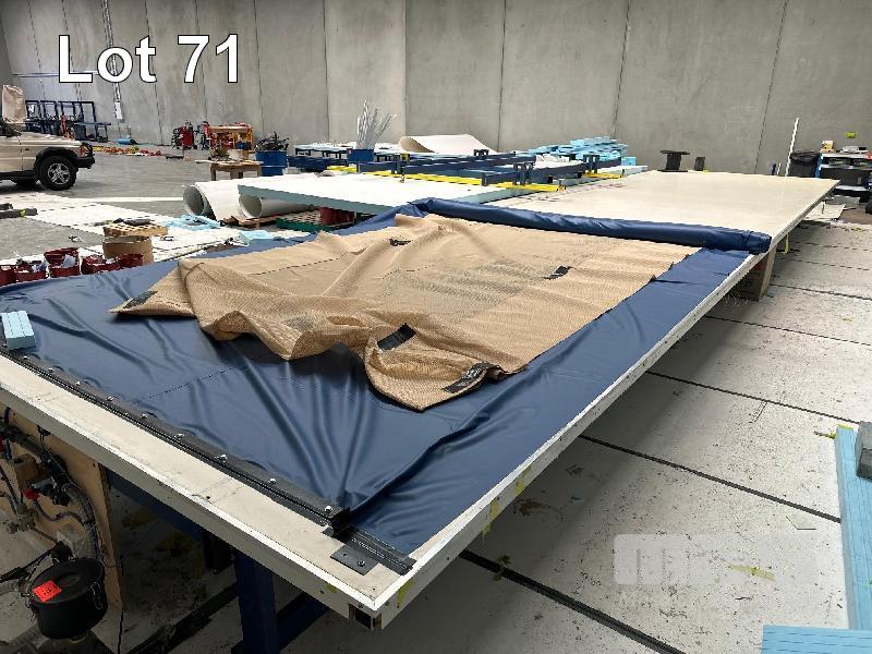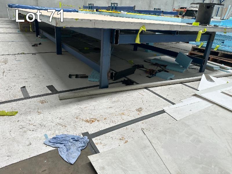 LARGE LAYOUT TABLE, 12m x 3.5m, STEEL TUBE FRAME (NOTE: BUYER TO DISMANTLE & REMOVE)
