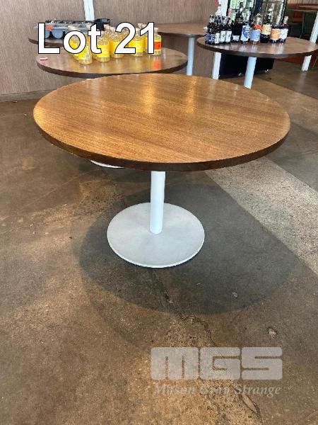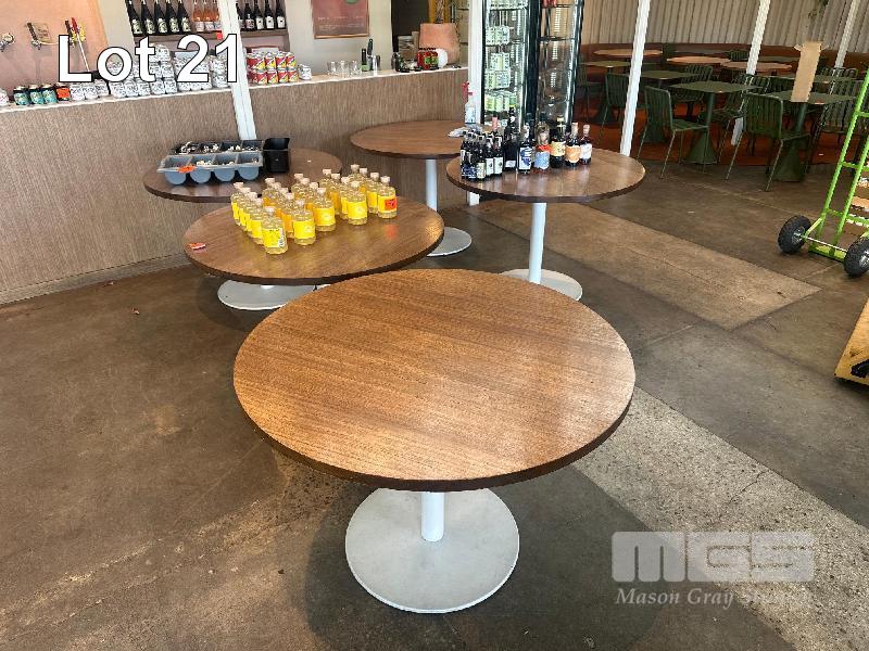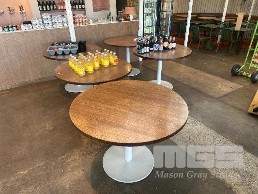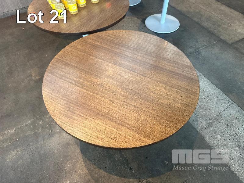 SET 5 CIRCULAR TIMBER TOP TABLES, 1100mm (D), PEDESTAL BASE, PEDRALI, MADE IN ITALY