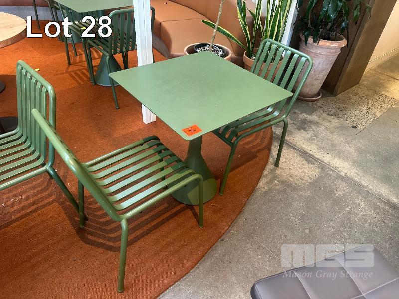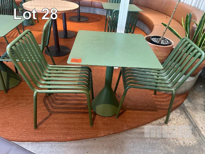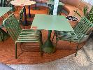 HAY CAFE TABLE, 650 x 650 x 740mm (H), STEEL FRAME & TOP, OLIVE GREEN, CONCRETE PEDESTAL BASE & 2 x HAY CHAIRS