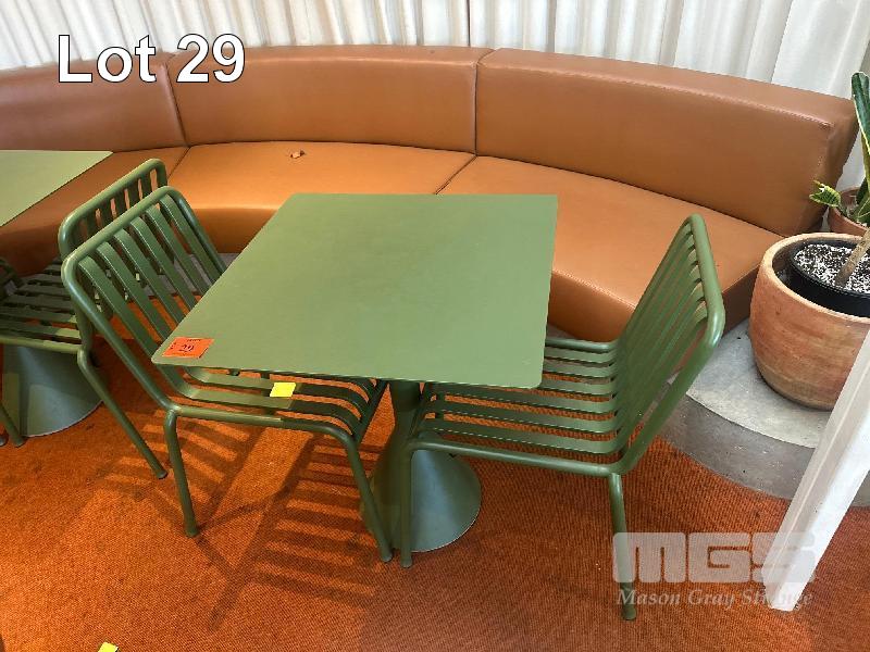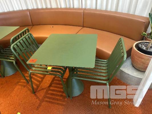 HAY CAFE TABLE, 650 x 650 x 740mm (H), STEEL FRAME & TOP, OLIVE GREEN, CONCRETE PEDESTAL BASE & 2 x HAY CHAIRS