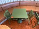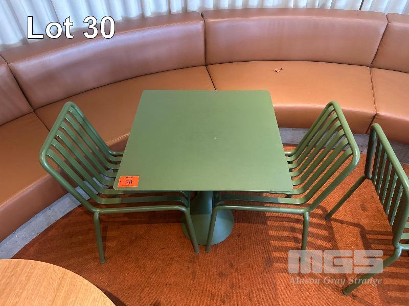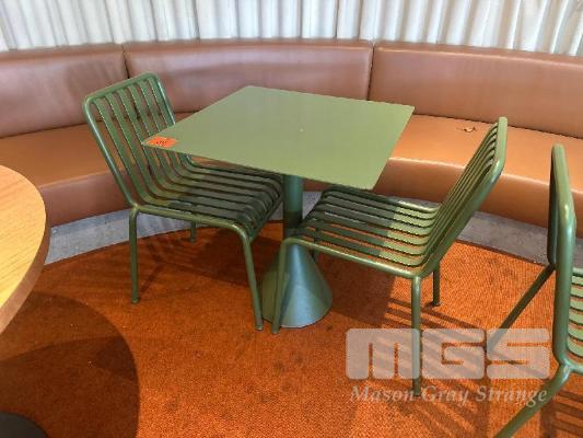 HAY CAFE TABLE, 650 x 650 x 740mm (H), STEEL FRAME & TOP, OLIVE GREEN, CONCRETE PEDESTAL BASE & 2 x HAY CHAIRS