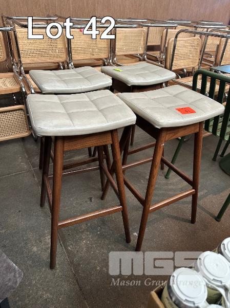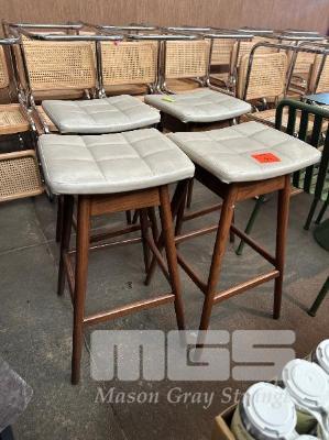 SET 4 WORKSPACE BAR STOOLS, FIXED, 700mm (H), SOLID TIMBER, EGGSHELL LEATHER SEAT