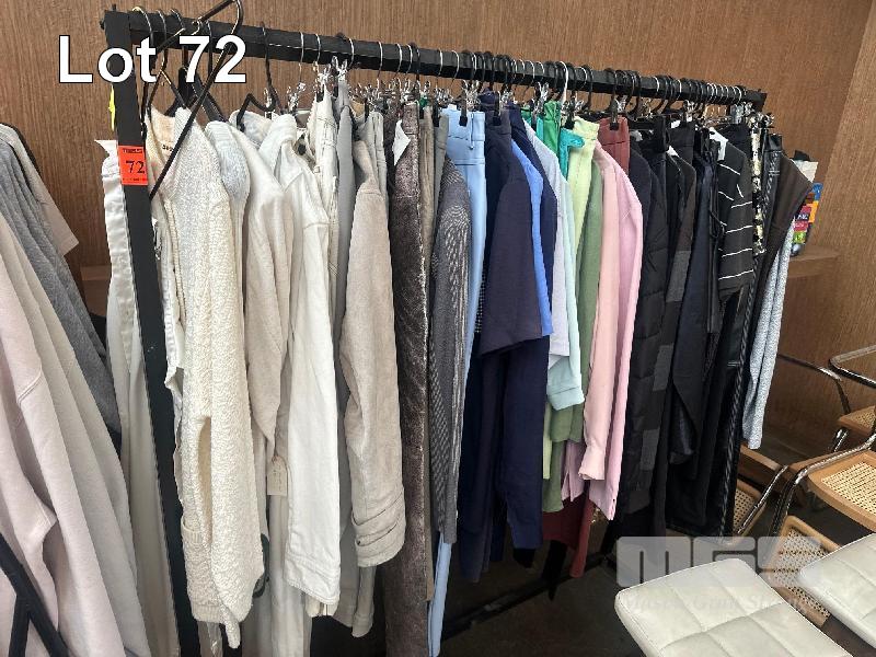 ASSORTED VINTAGE THRIFT CLOTHES & YELLOW MATTER MERCH, 3 x RACKS