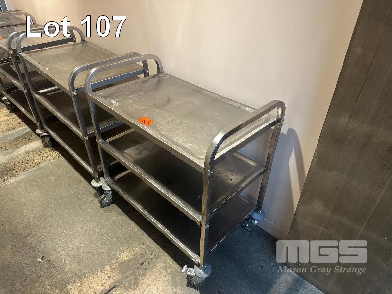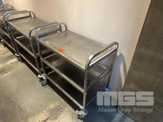 PAIR STAINLESS STEEL TROLLEYS, 900 x 500 x 900mm, 3 TIER