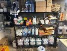 STORAGE RACKS, 1800 x 550 x 1800mm, 3 & 4 TIER WITH CONTENTS LARGE QUANTITY CLEANING PRODUCTS, COOKING OILS, TAKEAWAY CONTAINERS, ETC