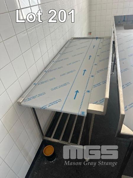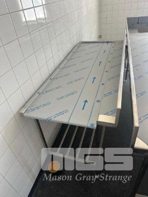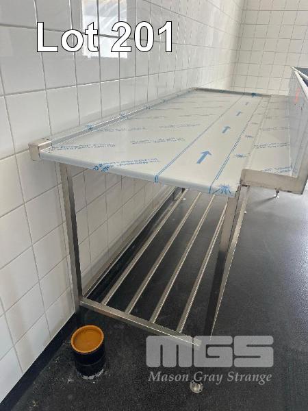 STAINLESS STEEL OUTFEED BENCH, 1700 x 700mm, SUIT COMMERCIAL DISHWASHER, WITH SPLASHBACK AS NEW