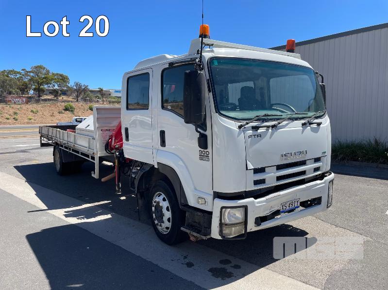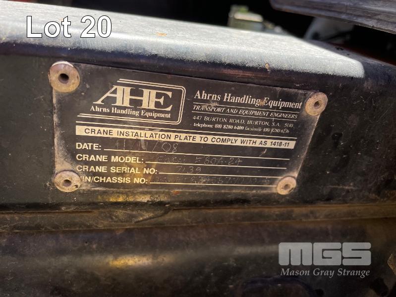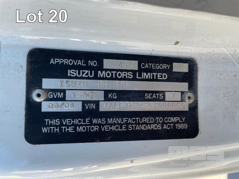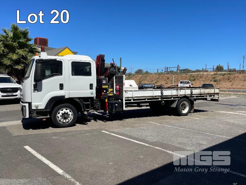 2008 ISUZU FH FTR 900 LONG EURO V 4X2 CRANE TRUCK REG: XS49IY (SA) (EXPIRY: 19/02/2026) VIN: JALFTR34S87000065 ODO: 271,044 GVM: 15000 GCM: 24000 SITEC 225 SERIES 2, 6 SPEED MANUAL, DIESEL, 4 DOORS, 7 SEAT, AIR CON, AIR KIT, CB RADIO, HYDRAULICS, STEEL RIMS, STEEL TRAY, 6m STEEL TRAY WITH DROP SIDES, 2 x TOOL BOXES, NOTE: FRONT BUMPER DAMAGE & FRONT RHS PLASTIC DAMAGE WITH FASSI HYDRAULIC CRANE, MOD: F80A24, SERIAL: 7139, NEXT INSPECTION DUE: 22/09/2029 (NO PAPERS, WITH 1 KEY/S, NO OWNER'S MANUAL, NO SERVICE BOOKS)