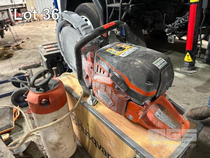HUSQVARNA RING SAW, MOD: K970, PETROL, WITH CARRY CASE, SPARE BLADE & HAND OP WATER SUPPLY PUMP