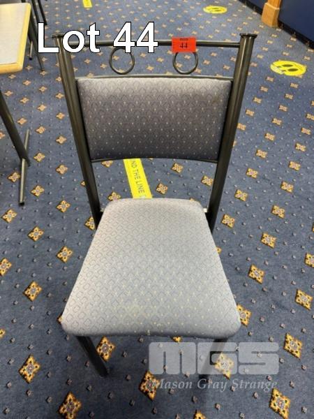 24 x DINING CHAIRS, BLUE PATTERNED FABRIC SEAT & BACK