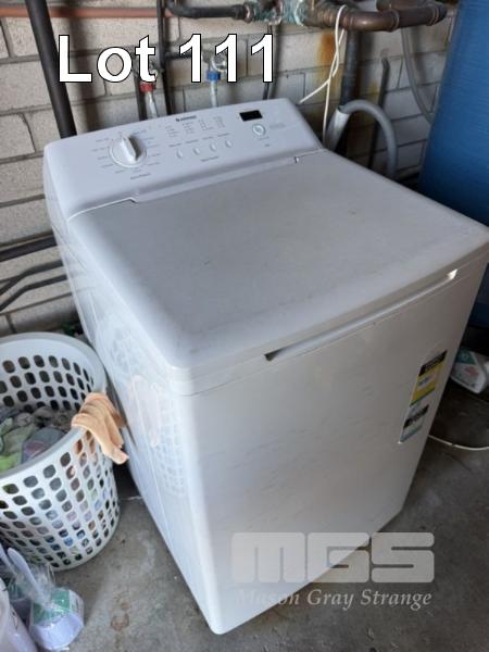 HOUSE LAUNDRY INCLUDING SIMPSON TOP LOAD WASHING MACHINE, 7.5K, 2 x VACUUM CLEANERS, 3 x GALV STEEL STOCK SHELVES, 150 x 75cm