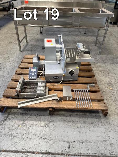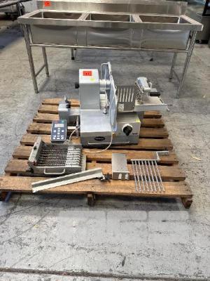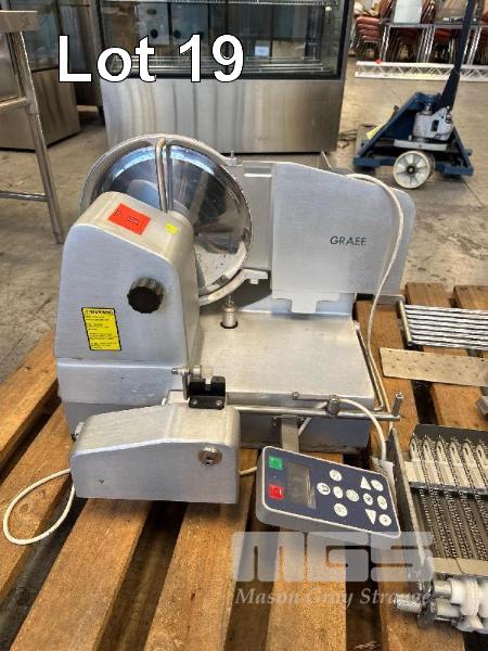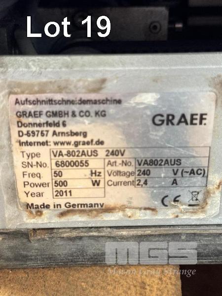 FULLY AUTO FOOD SLICER STACKER, GRAEF DIGITAL CONTROL PANEL & ATTACHMENTS, 4 x PROGRAMMABLE PLU'S MOD: VA-802AUS, 300mm BLADE DOM: 2011 240 V 10 AMP