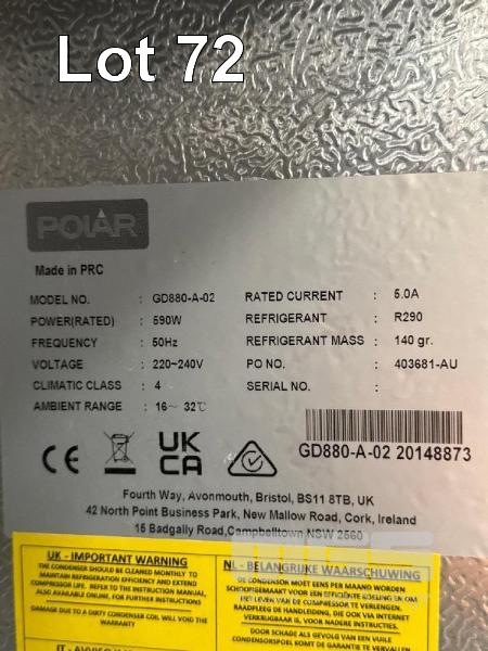 THERMASTER 4 DOOR CHEFS CHILLER, MOD: SUC1000, 950L, 240V 10AMP