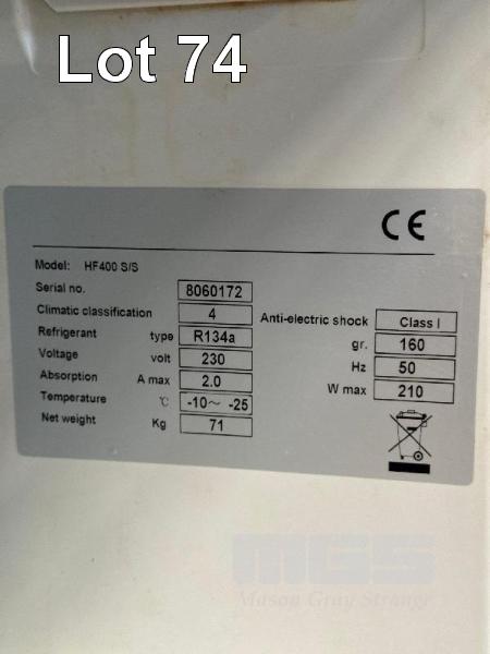 UPRIGHT CHEFS FREEZER, MOD: HF400 6 TIER 240V, 10 AMP