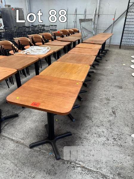 5 x CAFE TABLES, TIMBER TOP 600 x 600mm