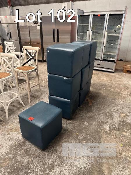 10 x BLUE LEATHER OTTOMANS, 400 x 400 x 400mm