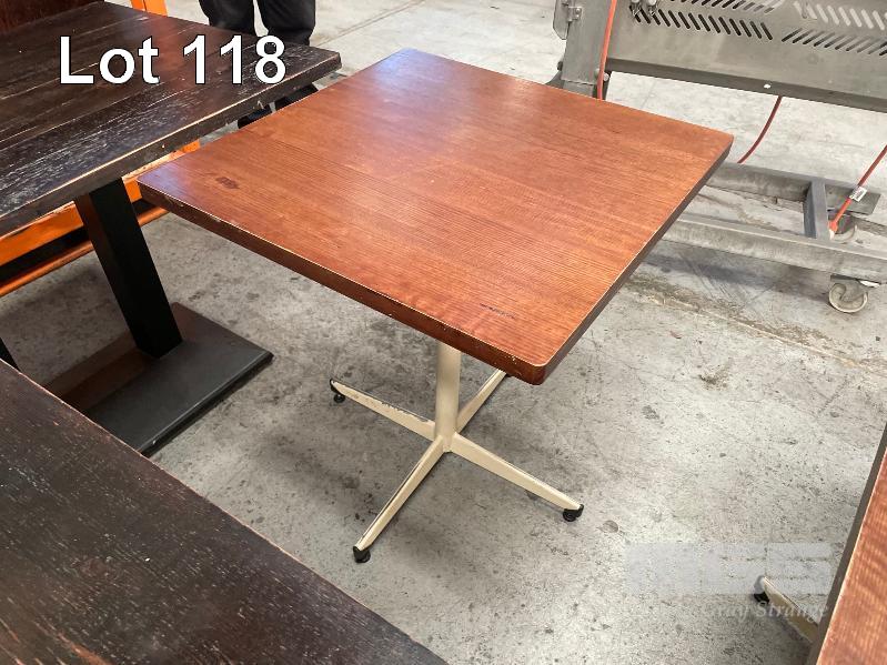 12 x SOLID TIMBER TOP CAFE TABLES, 600 x 600mm, HEAVY, PEDESTAL BASE
