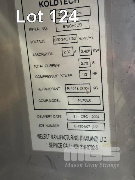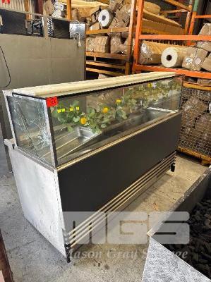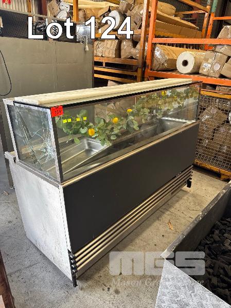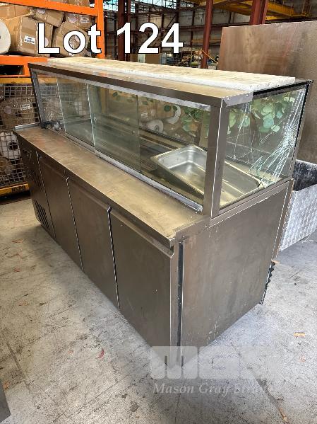 UNDER BENCH FRIDGE & DISPLAY CABINET, KOLDTECH MOD: SQSM-1885-1 240V (BROKEN GLASS AND MISSING WHEELS)