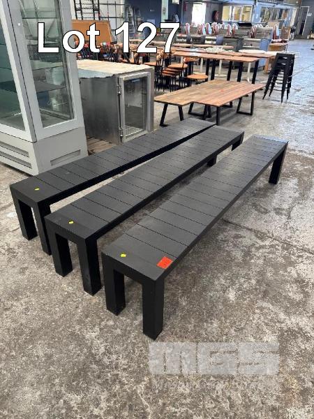 3 x BLACK BENCHES 2300 x 350 x 450mm