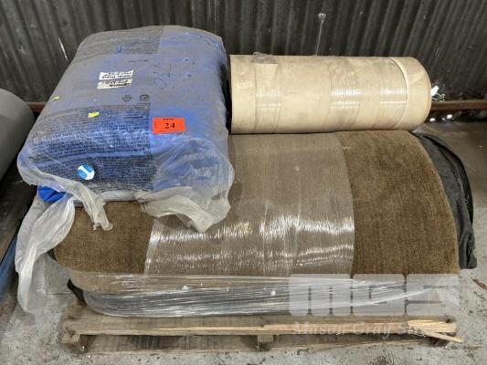 2 x ROLLS CARPET BROWN & BLUE, 1,000mm (W) 1 x ROLL UNDER LAY FOAM, 600mm (W) 1 x POOL LINER, 15' x 48" (1 x PALLET)