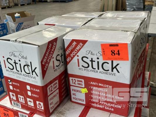 BUILDERS ADHESIVE, PHO STICK I-STICK, MS POLYMER ADHESIVE, ANTI MILDEW, FLEXIBLE, 6 x BOXES (12 x 300ml TUBES/BOX) EXP: 9/04/2026