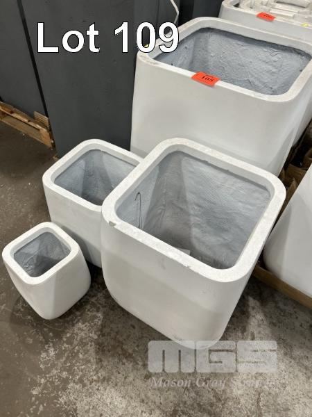 SET OF 4 CONTEMPORARY PLANTER POTS COLOUR: WHITE 1 @ 650mm (H) 1 @ 520mm (H) 1 @ 380mm (H) 1 @ 260mm (H)