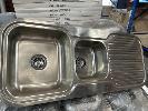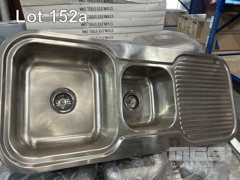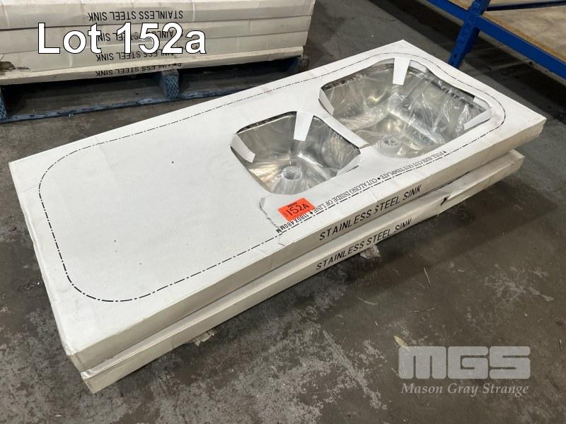 2 x STAINLESS STEEL TWIN BOWL SINKS, 1180 x 480mm WITH FITTINGS AS NEW