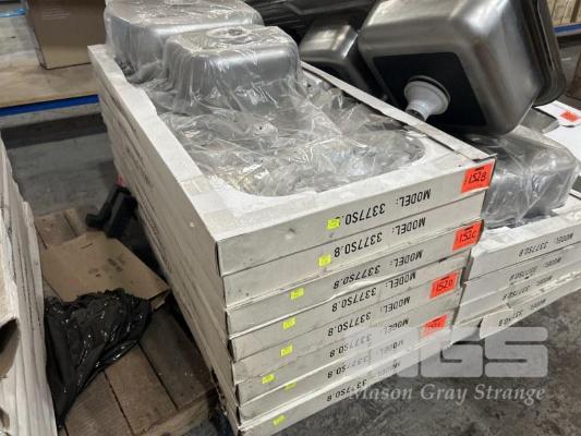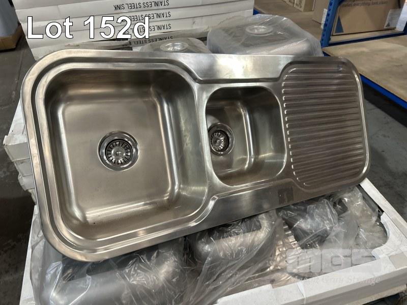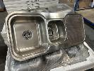 2 x STAINLESS STEEL TWIN BOWL SINKS, 1180 x 480mm WITH FITTINGS