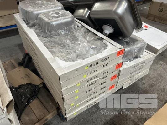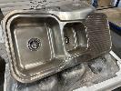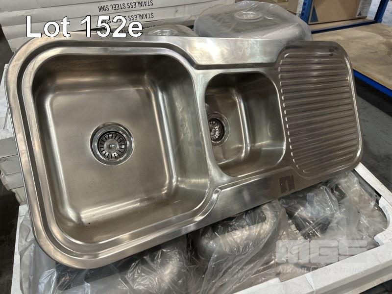 2 x STAINLESS STEEL TWIN BOWL SINKS, 1180 x 480mm WITH FITTINGS AS NEW