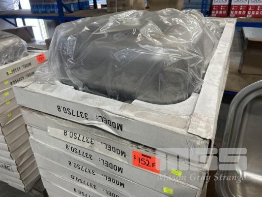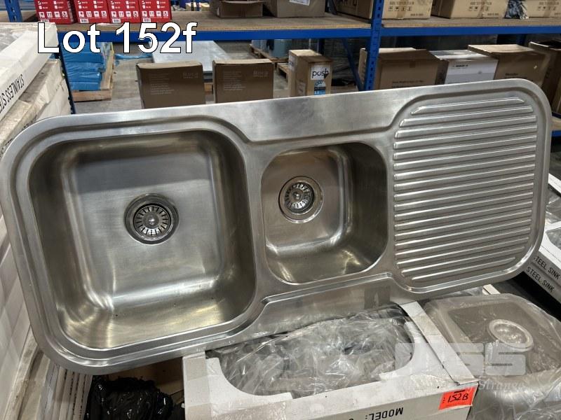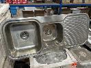 4 x STAINLESS STEEL TWIN BOWL SINKS, 1180 x 480mm WITH FITTINGS AS NEW