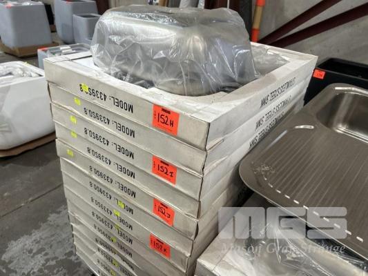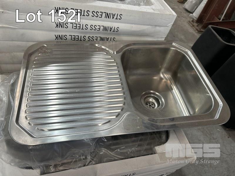 2 x STAINLESS STEEL SINGLE BOWL SINKS, 775 x 480mm WITH FITTINGS AS NEW