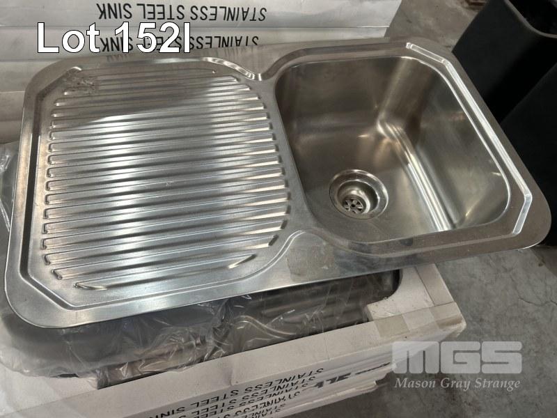 4 x STAINLESS STEEL SINGLE BOWL SINKS, 775 x 480mm WITH FITTINGS AS NEW