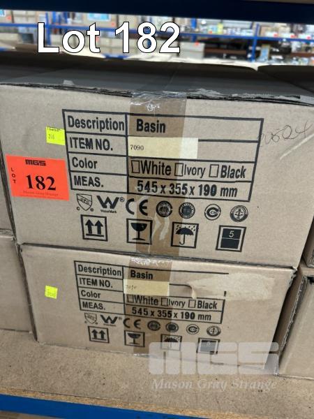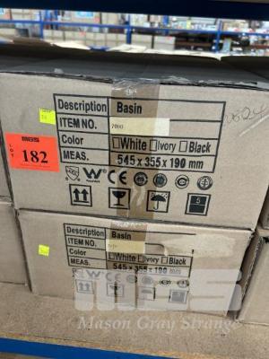 2 x WHITE CERAMIC BASINS, OBLONG, MOD: 7090