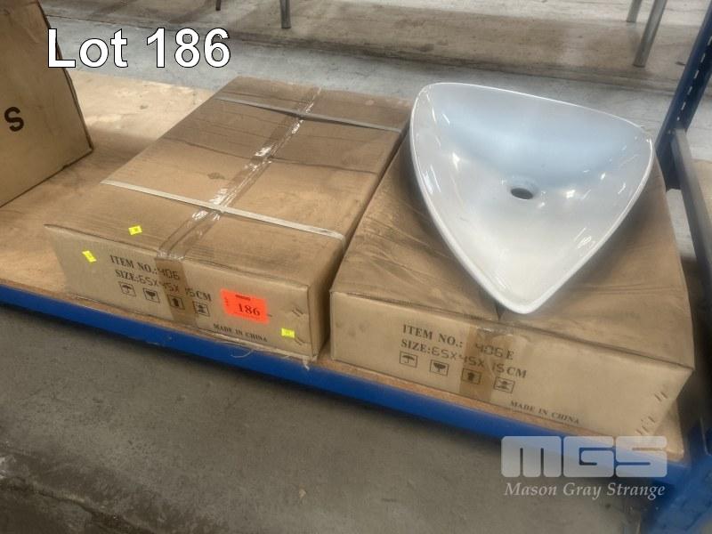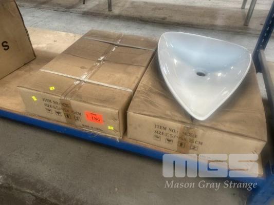 2 x WHITE CERAMIC BASIN, TRIANGULAR MOD: VCB406