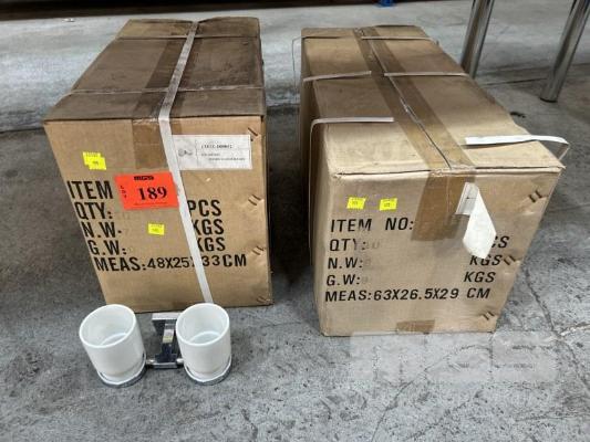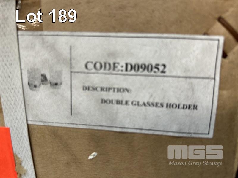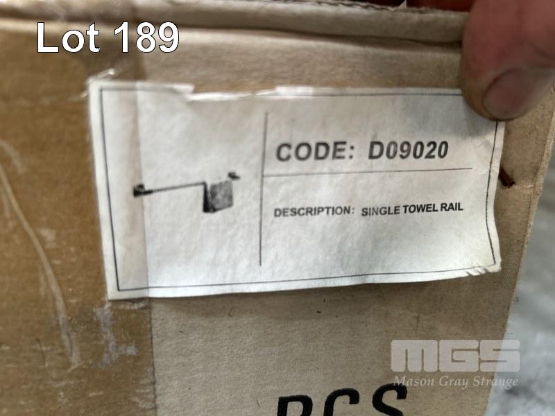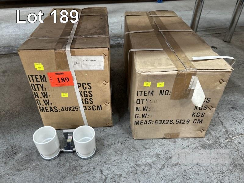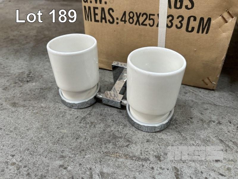 10 x SINGLE TOWEL RAILS, CHROME & 10 x DOUBLE GLASS HOLDERS WITH GLASSES 2 x BOXES